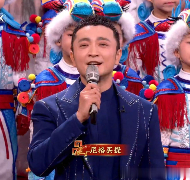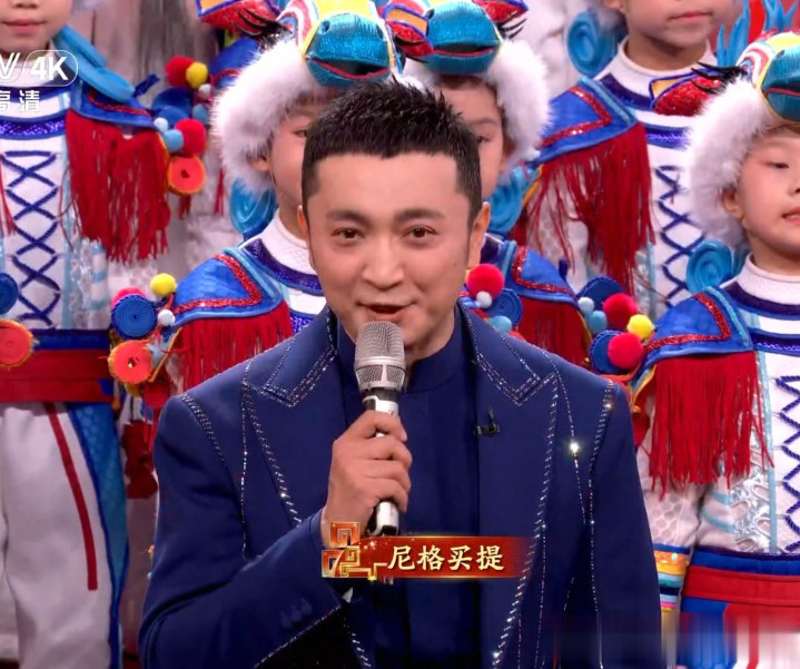 尼格买提的蓝色套装礼服,比黑色多了一些深沉和神秘,但因为蓝色中增加了一点黑,所以不会显得轻浮,反而很有气场。