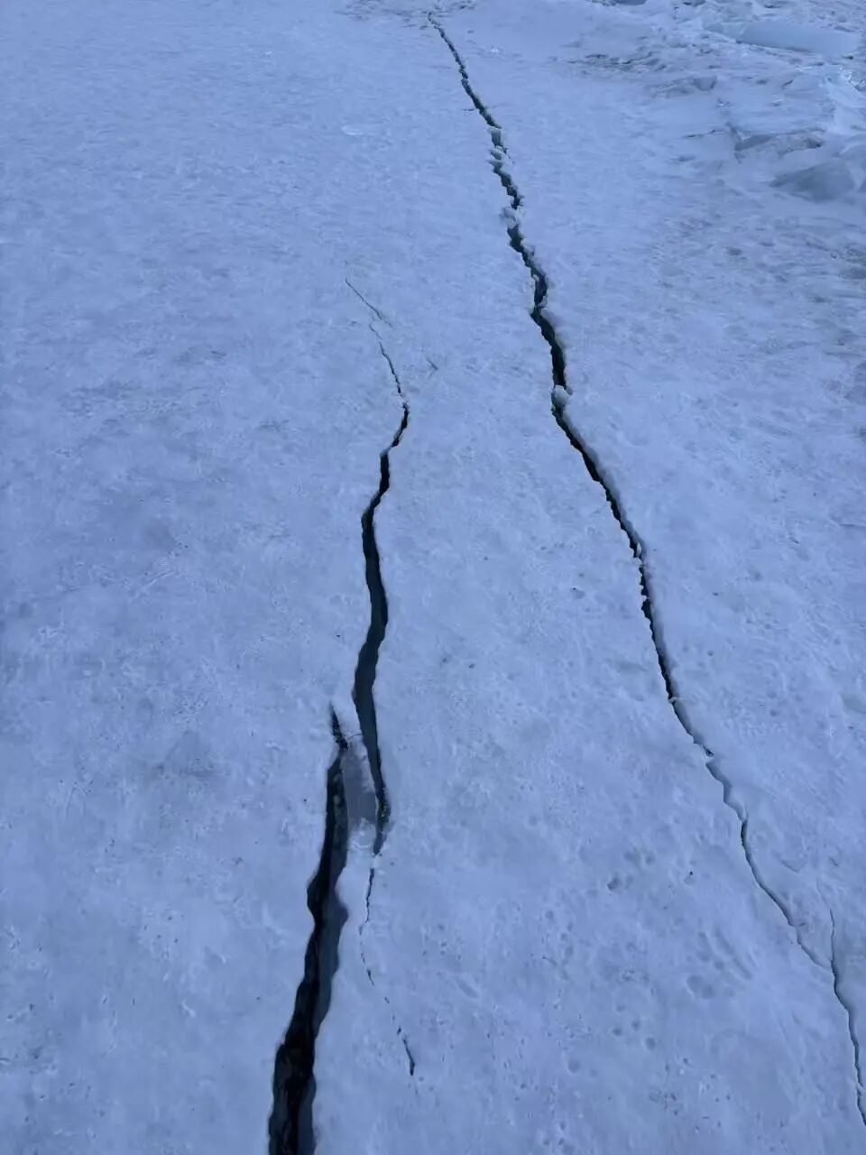 她回忆,下午1时至2时左右,沿途部分冰面厚度尚可,但肉眼可见多道缝隙,“我的同行伙伴曾遭遇冰面突然开裂,裂缝就在身后蔓延,靠对面俄罗斯小哥拉了一把才跳过来”。